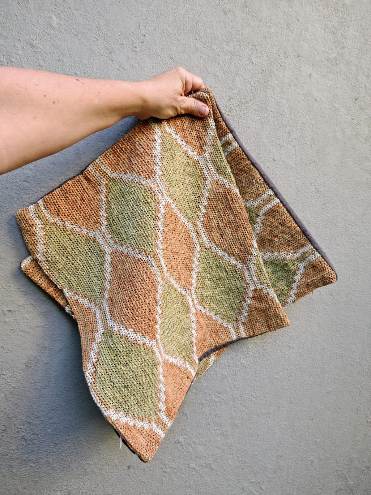 Almohadones hechos a mano con fibra de chaguar, realizados en punto antiguo con tintes naturales.