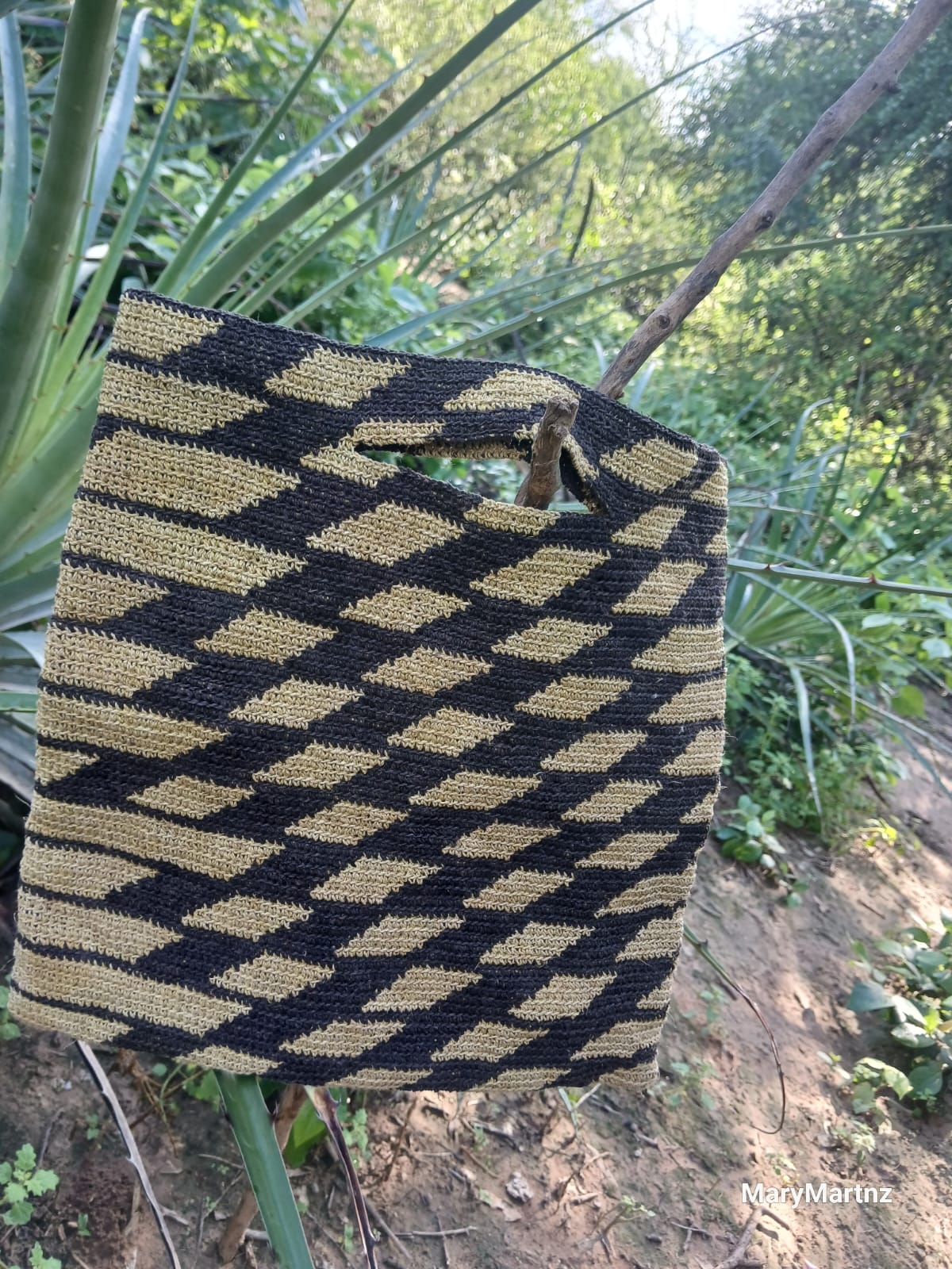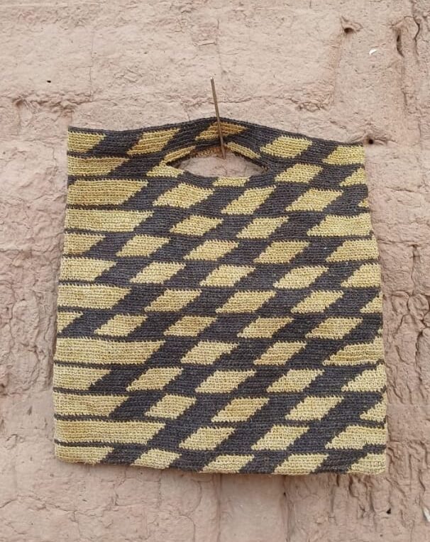 Clush hecho a mano con fibra de chaguar y tintes naturales del monte de Gran Chaco.