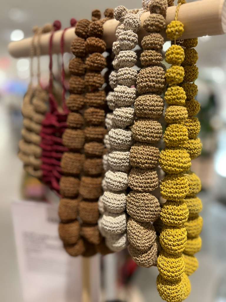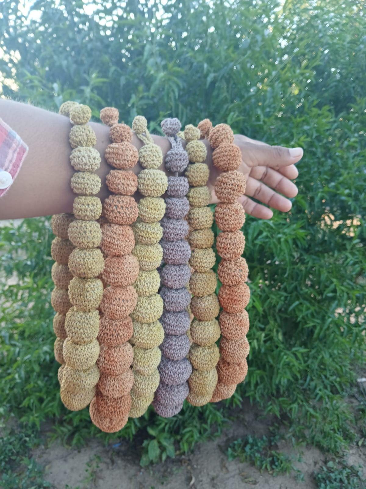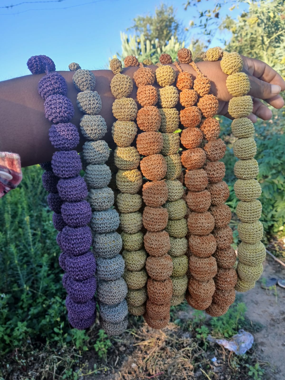 Liviano collar de bolas escalonadas. Muy original, hecho de fibra de chaguar por mujeres Wichi.