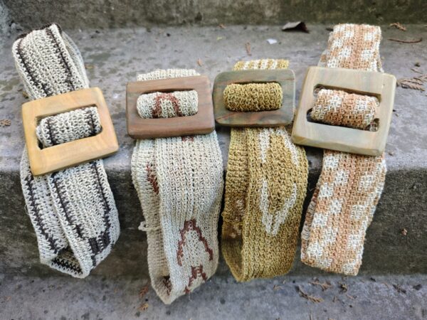 Guirnalda de flores realizada con las fibras de chaguar en diferentes combinaciones de colores.