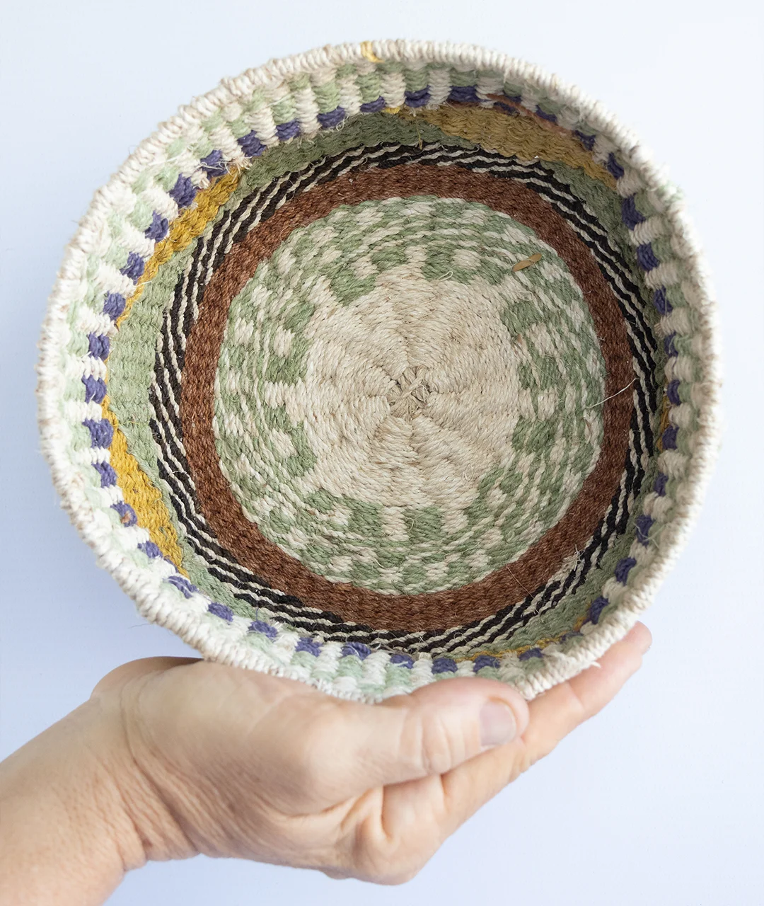 Juego de dos paneras de chaguar. Una mide 7cm de alto  por 17,5 y la otra mide 7 cm de alto x 19,5.  Este es un trabajo artesanal realizado a mano por artesanas mujeres Wichi de Formosa. El punto es de Cestería.